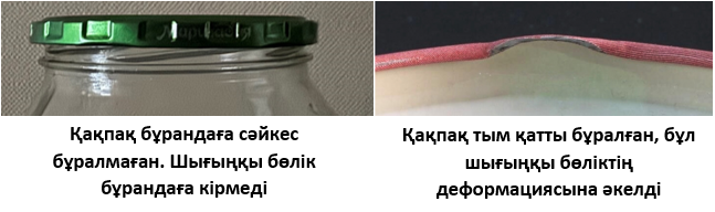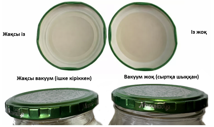 Қақпақтың ортасы ішке қарай ойыс болуы тиіс. Егер ортасы сыртқа қарай дөңес болса, вакуум жоқ.